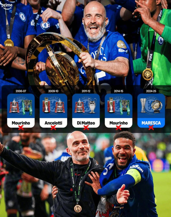 随着马雷斯卡与切尔西分道扬镳,Prime盘点了一项颇具戏剧性的统计:在英格兰顶级联赛,历史上仅出现过5次“主教练上一赛季拿到两座重要奖杯,却在不久后被解雇或以协商方式离任”的情况,而这5次全部来自切尔西。